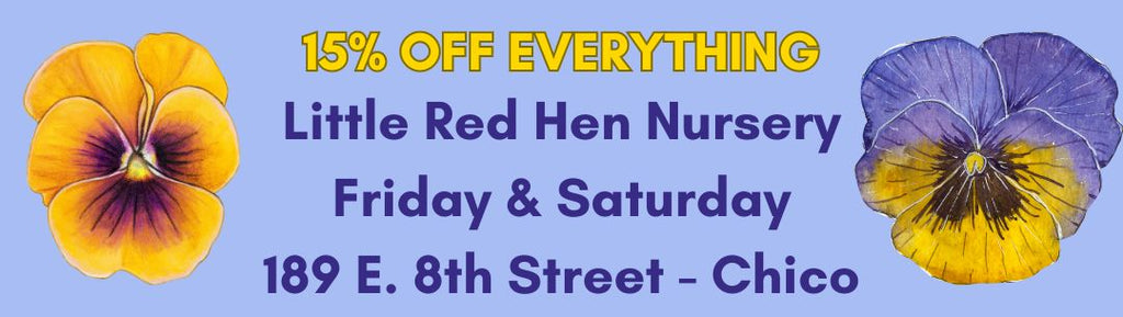 It is that time of year again for the annual Local Nursery Crawl! 15plant nurseries from Butte County will be participating, includingLittle Red Hen Plant Nursery. As in previous events, start by pickingup a flier from your favorite nursery and visit them in any order. Ateach location, you will receive a stamp.After you have collected six stamps you can be entered into a raffleat the nursery of your choice. No purchase is necessary to be enteredinto the raffle – where you can win a gift certificate from anyparticipating nursery. The Annual Nursery Crawl will be taking place March 22 and 23rd.