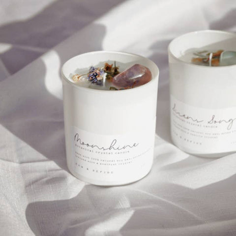 Botanical Crystal Candle Infused With Charged Gemstone: INTO THE WOODS