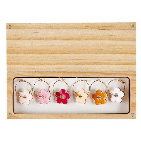 Mark your wine glass with one of these colorful flower shaped Wine Charms. They are perfect for guests to identify and personalize their drinks. Simply push the end through the loop to secure charm on wine glass stem.