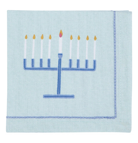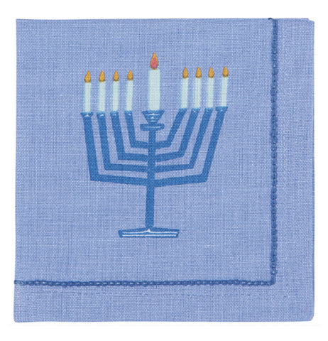 Take a break to make your Hanukkah moments special with these delightful cocktail napkins! Each wonderful napkin features a fully lit menorah, each in a different style and with a different background in shades of blue.