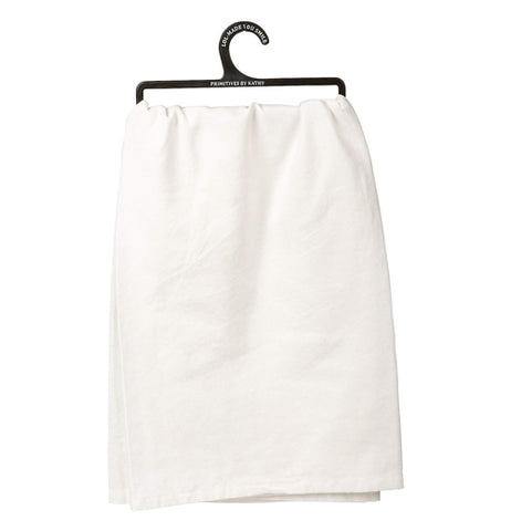 A festive cotton dish towel offering a whimsical "My Favorite Color Is Fall" sentiment with leaf designs and glitter accents. Perfect for use in the kitchen or as a gift for a friend.